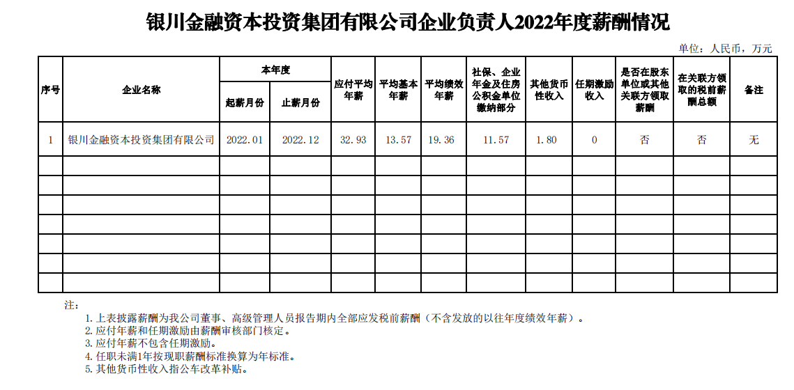 銀川金融資本投資集團(tuán)國(guó)有企業(yè)負(fù)責(zé)人 2022 年度薪酬情況